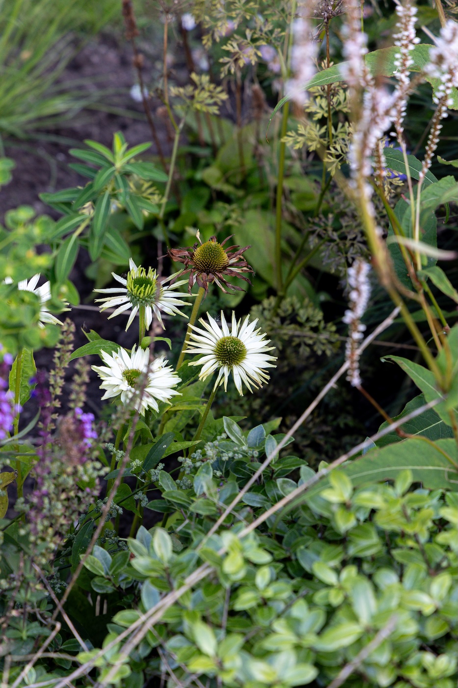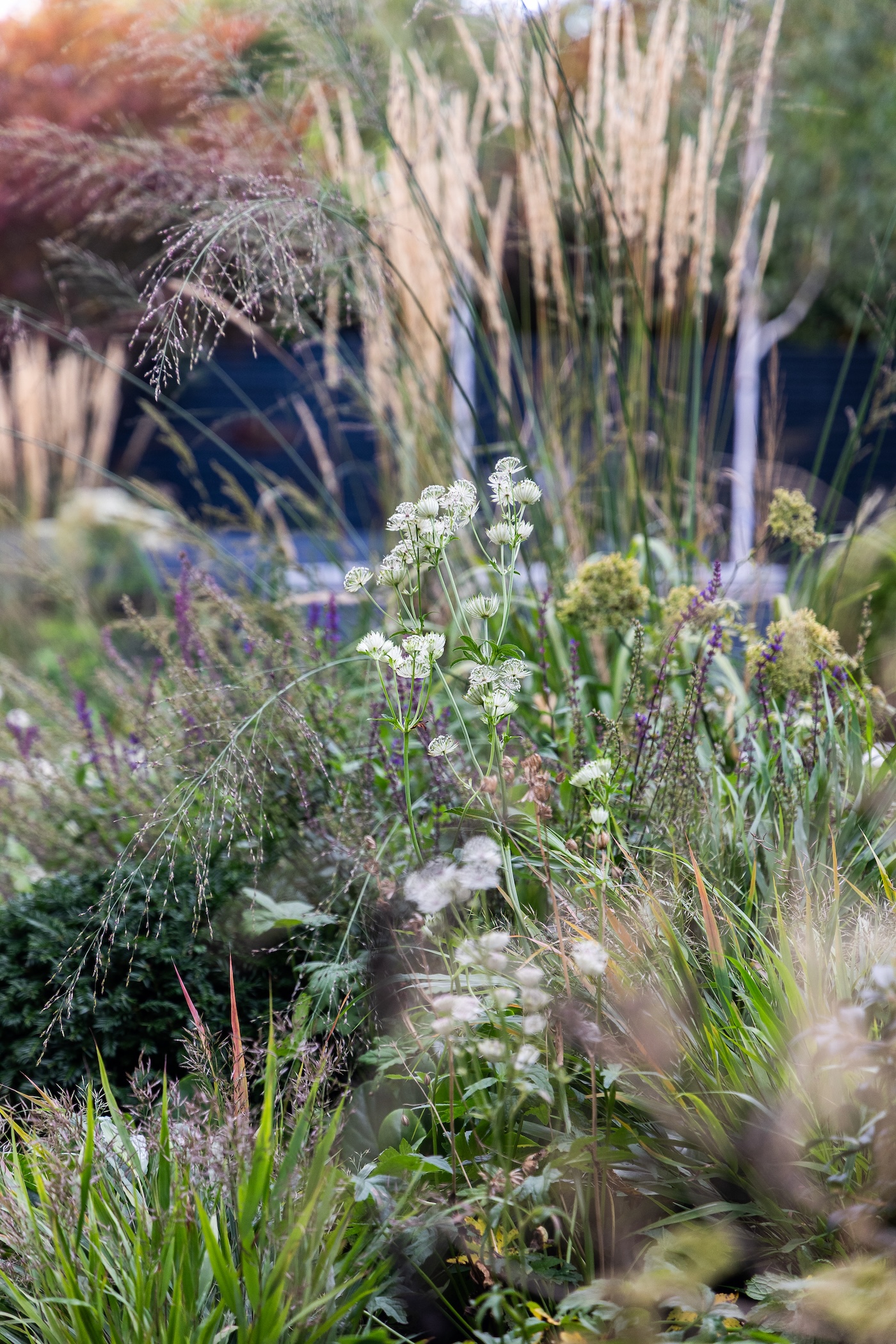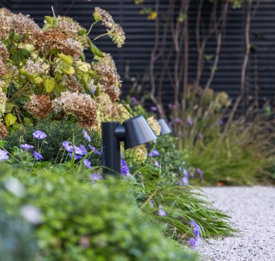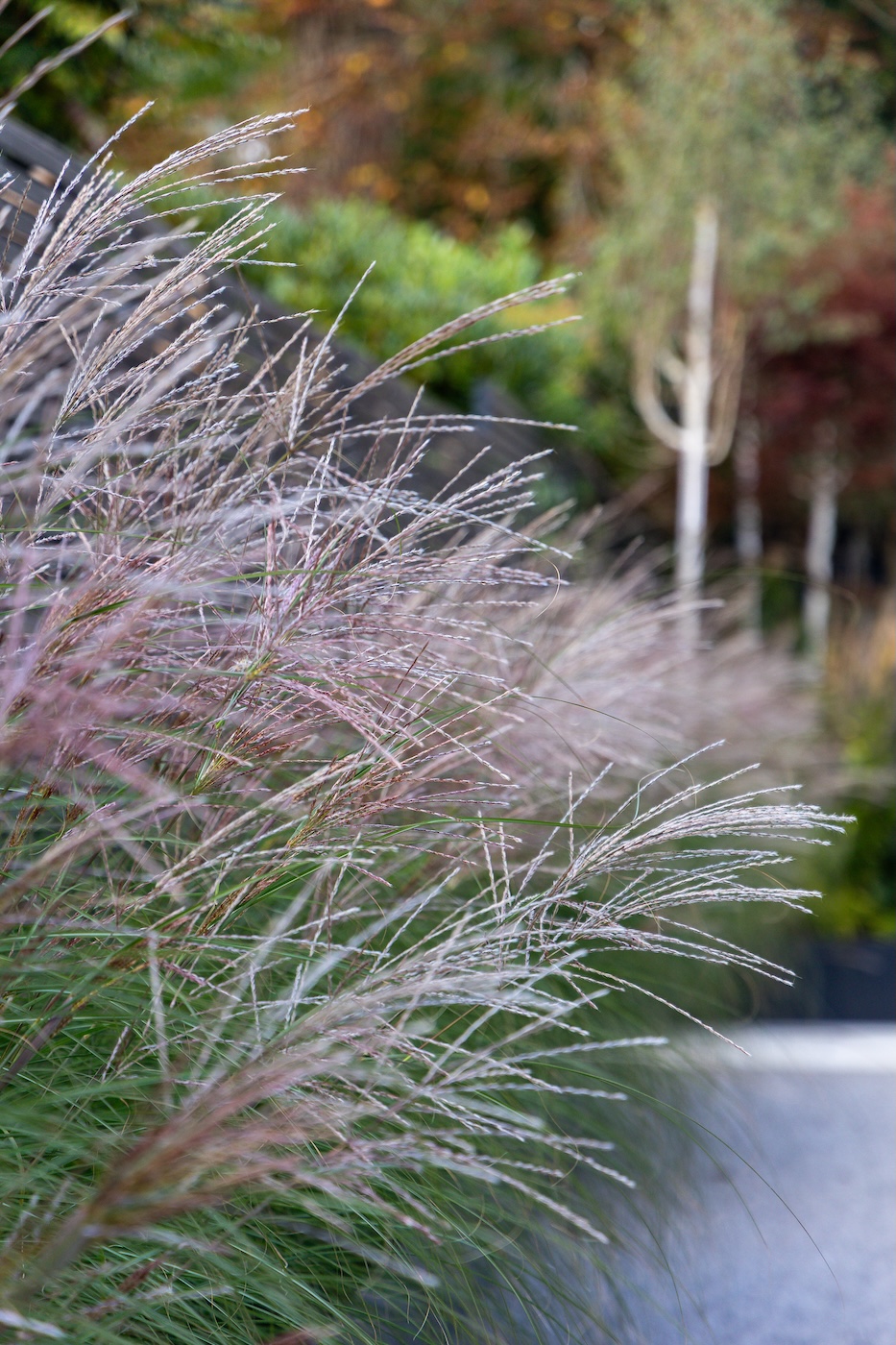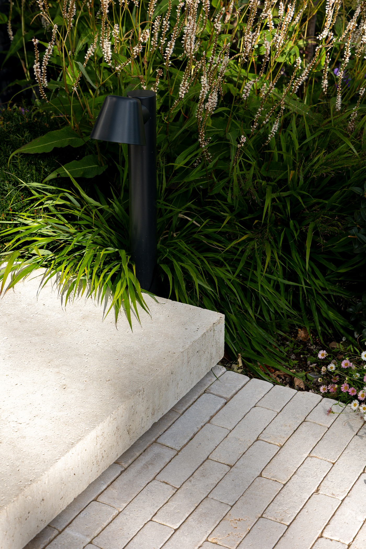 The front garden and driveway continue the theme whilst providing a striking approach to the property. Texture is added with the inclusion of gravel and stone pavers. A long path leads you to the floating step and front door, flanked by multistep trees which add drama and height interest.