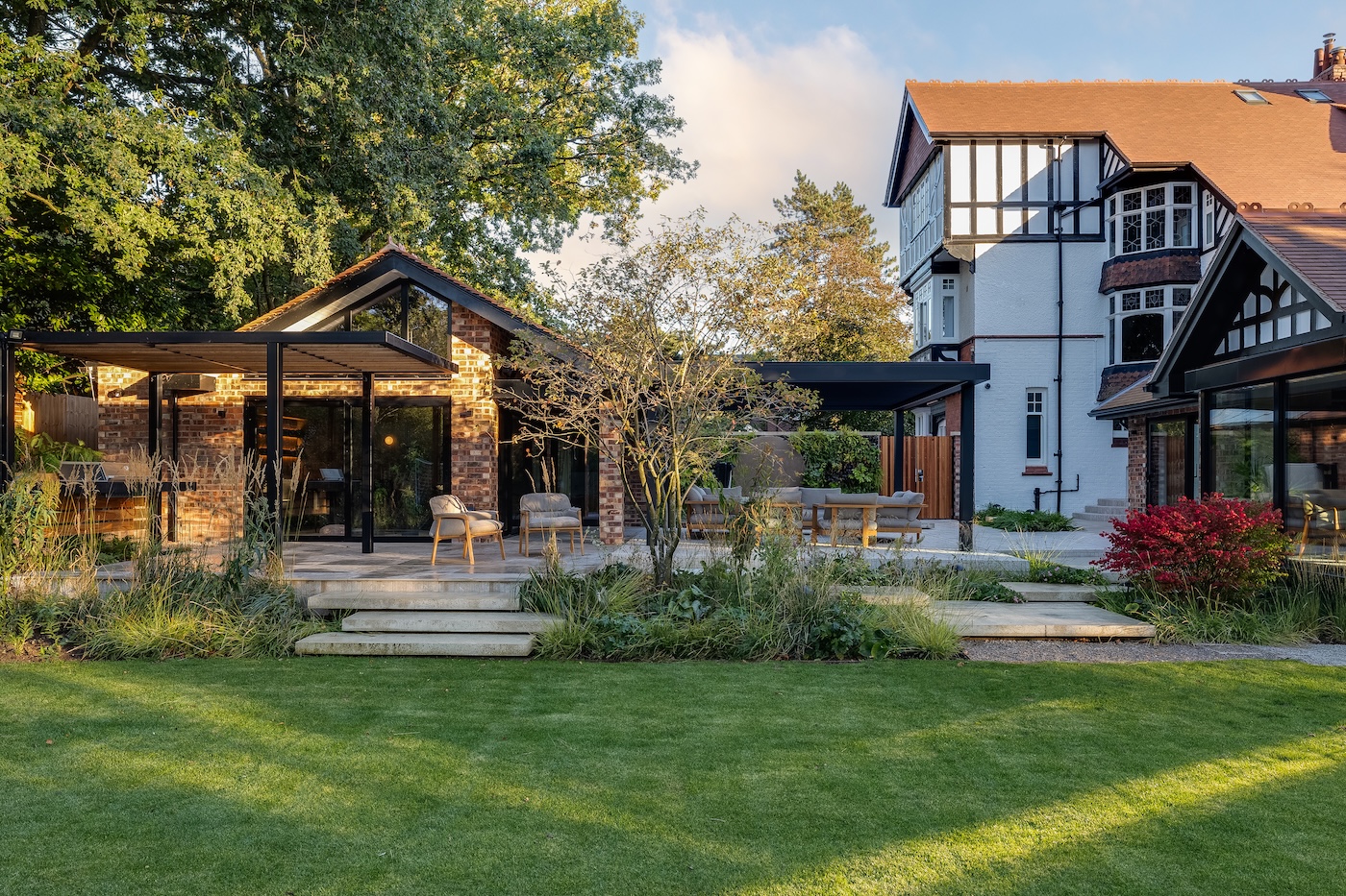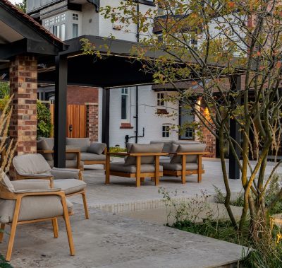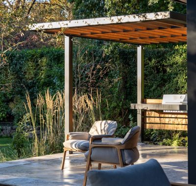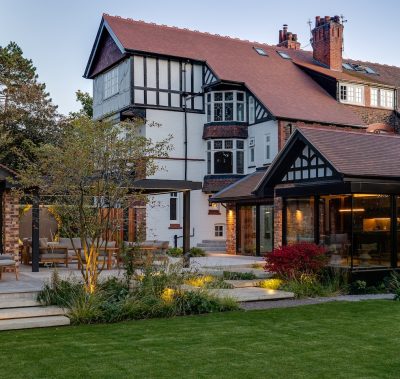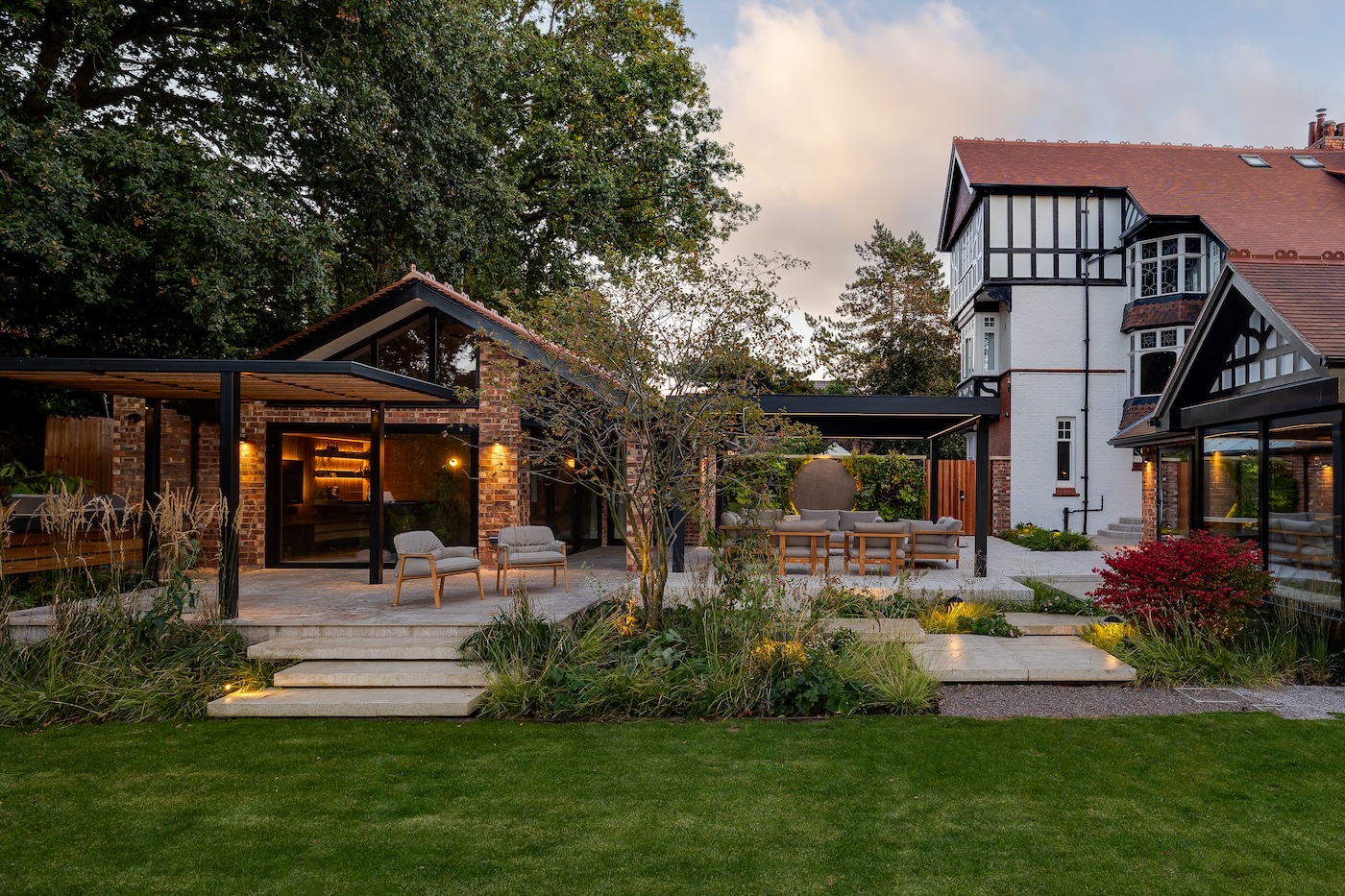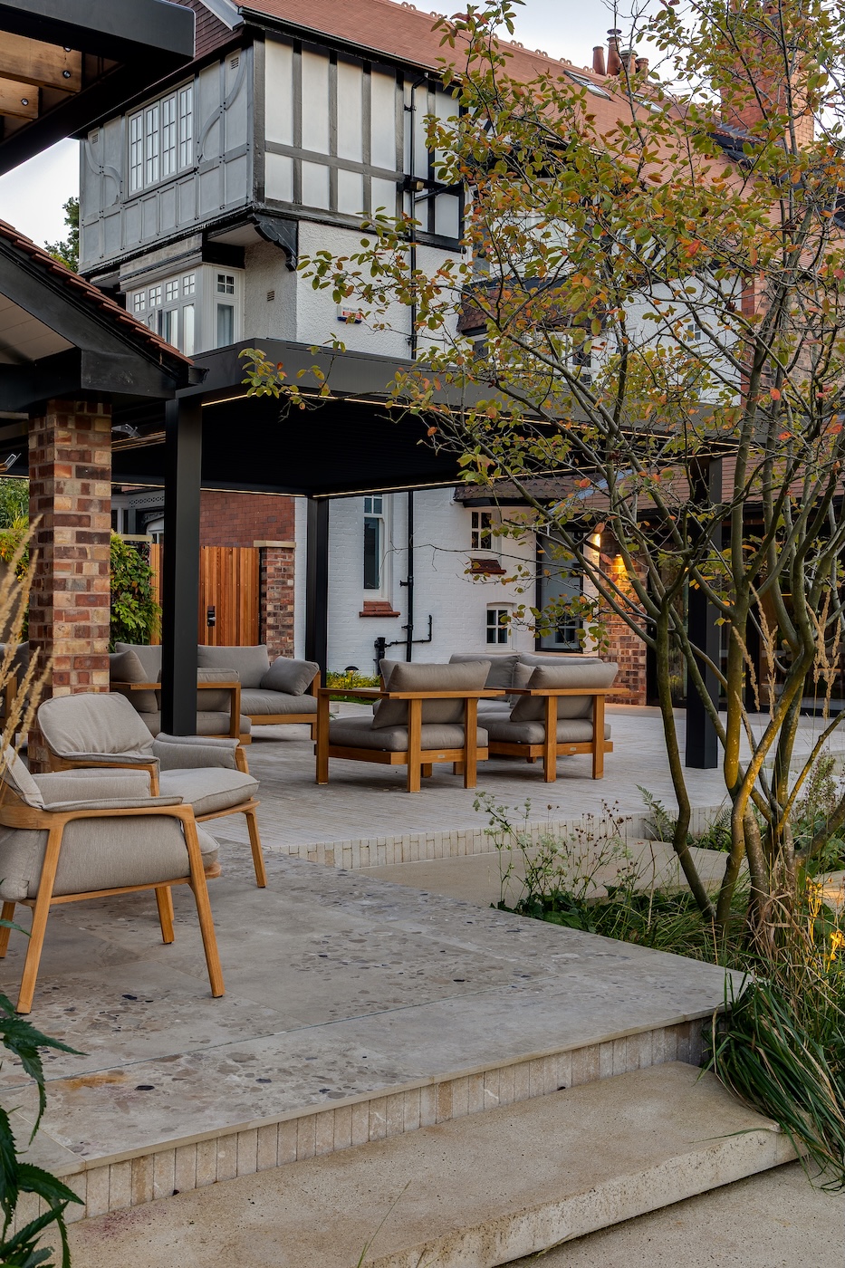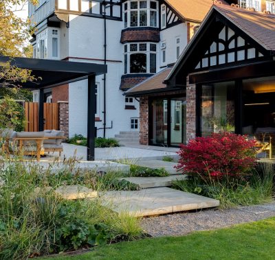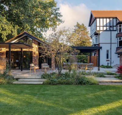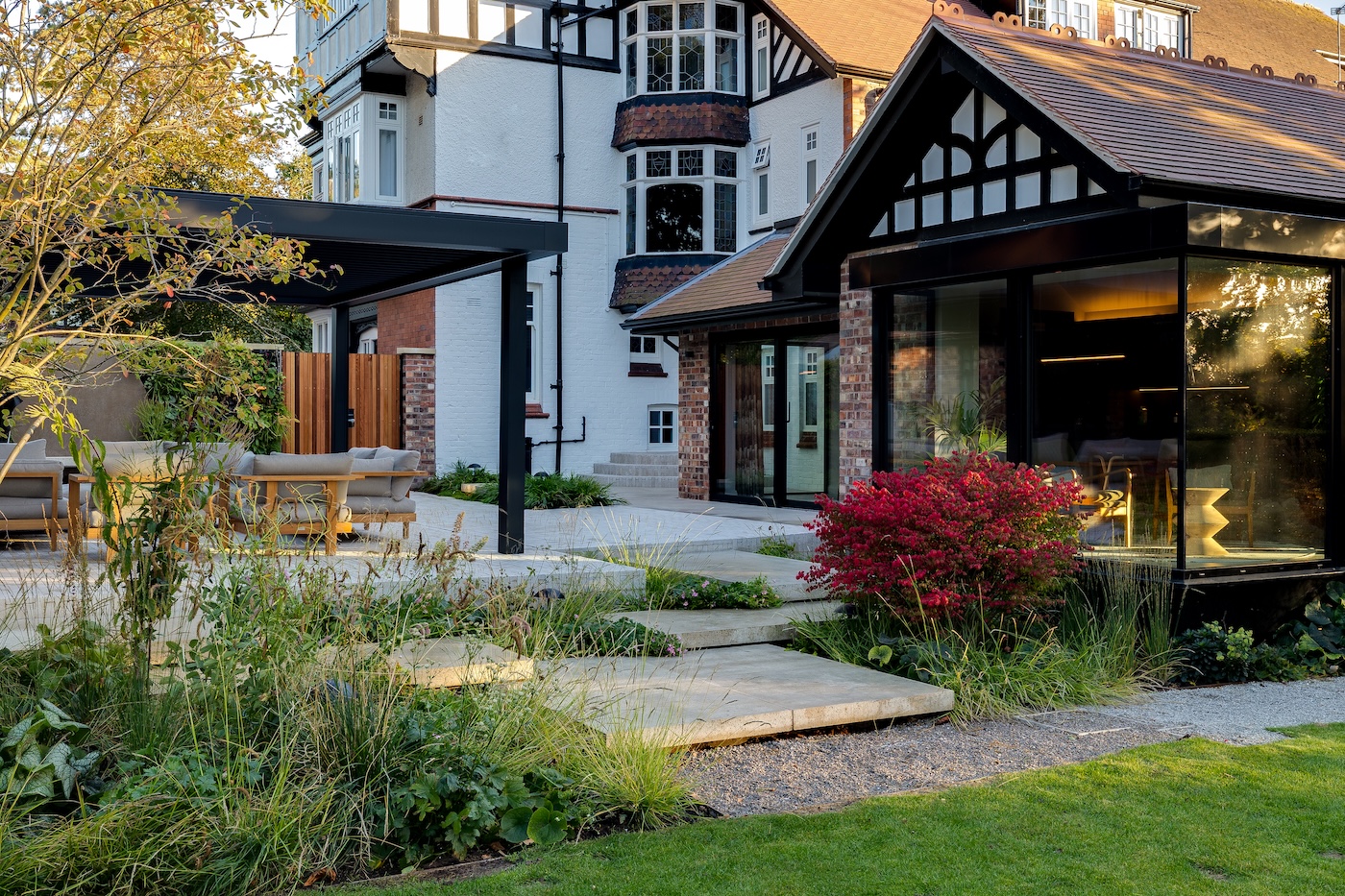 This garden harmoniously bridges the property’s period architecture and modern extension, using a mix of complementary and contrasting materials and features to create a cohesive and sophisticated outdoor environment.