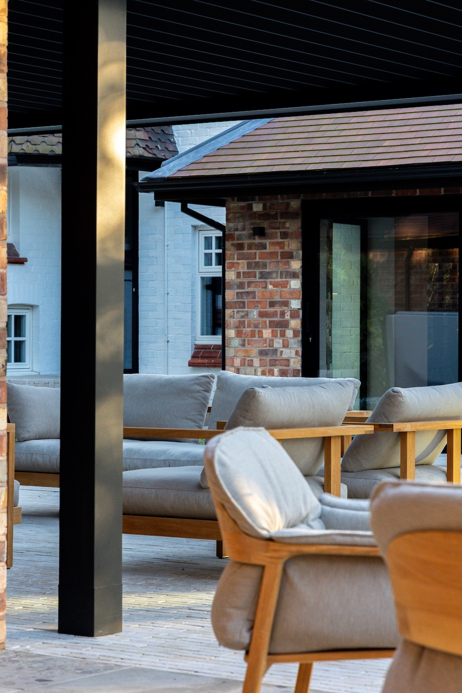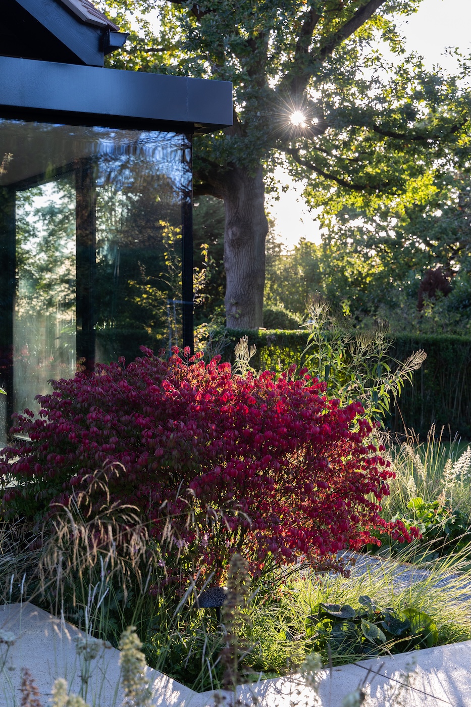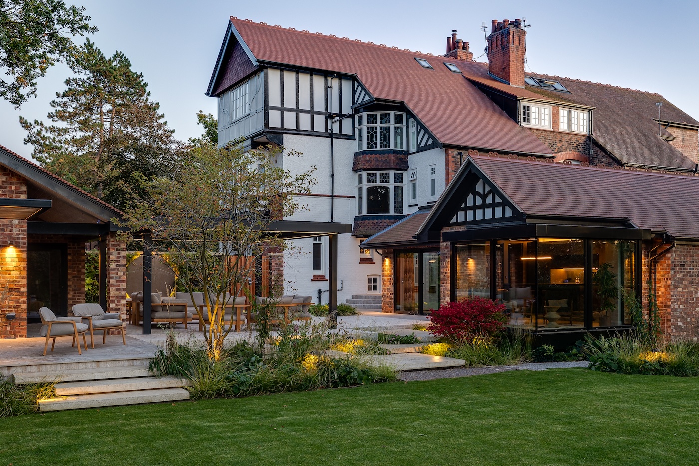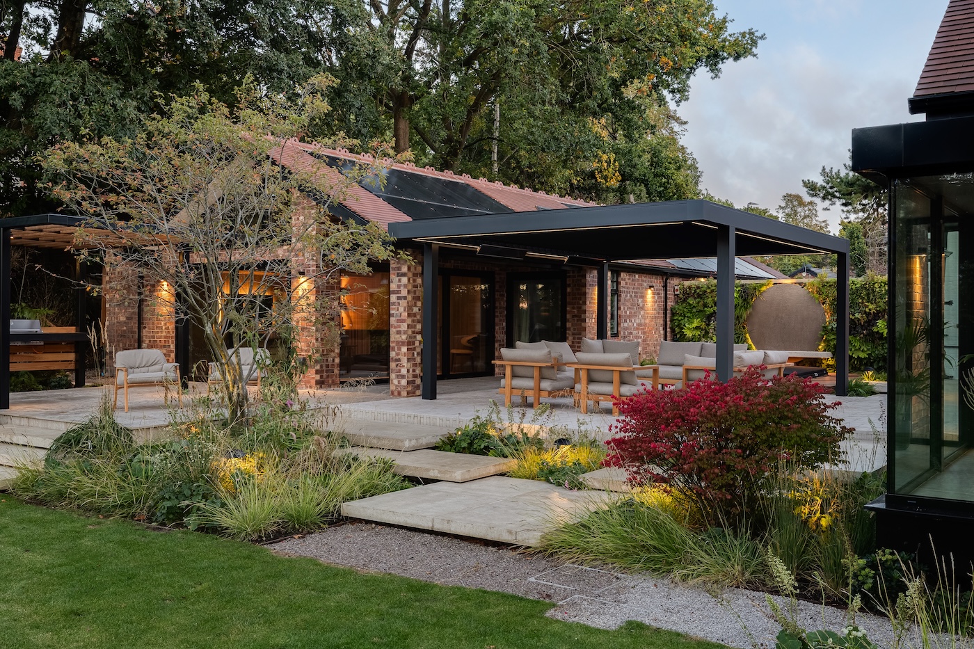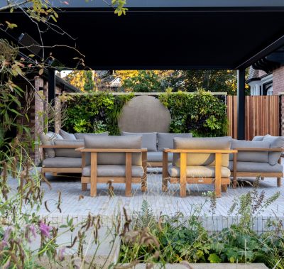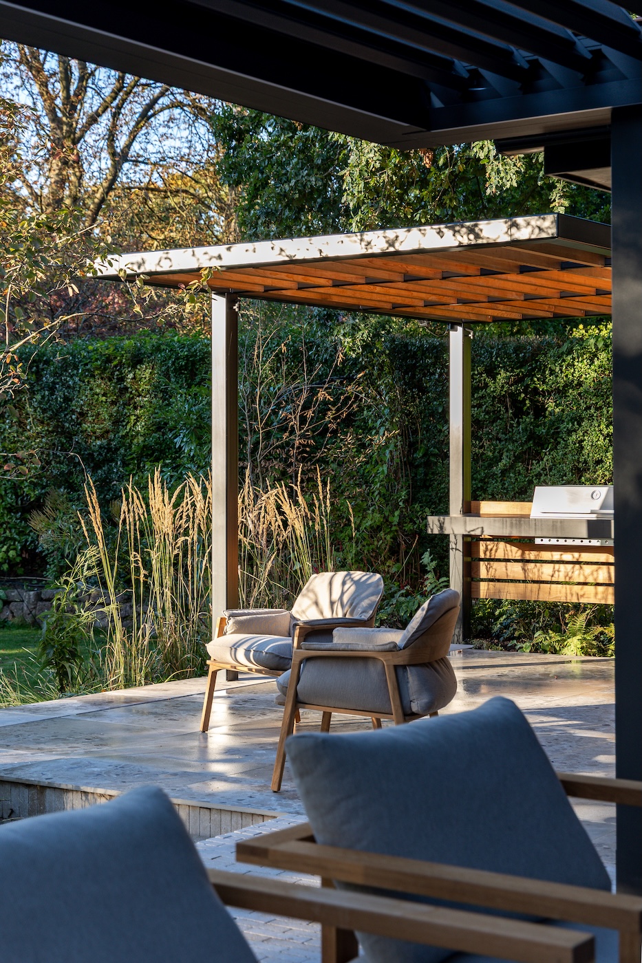 This garden harmoniously bridges the property’s period architecture and modern extension, using a mix of complementary and contrasting materials and features to create a cohesive and sophisticated outdoor environment.