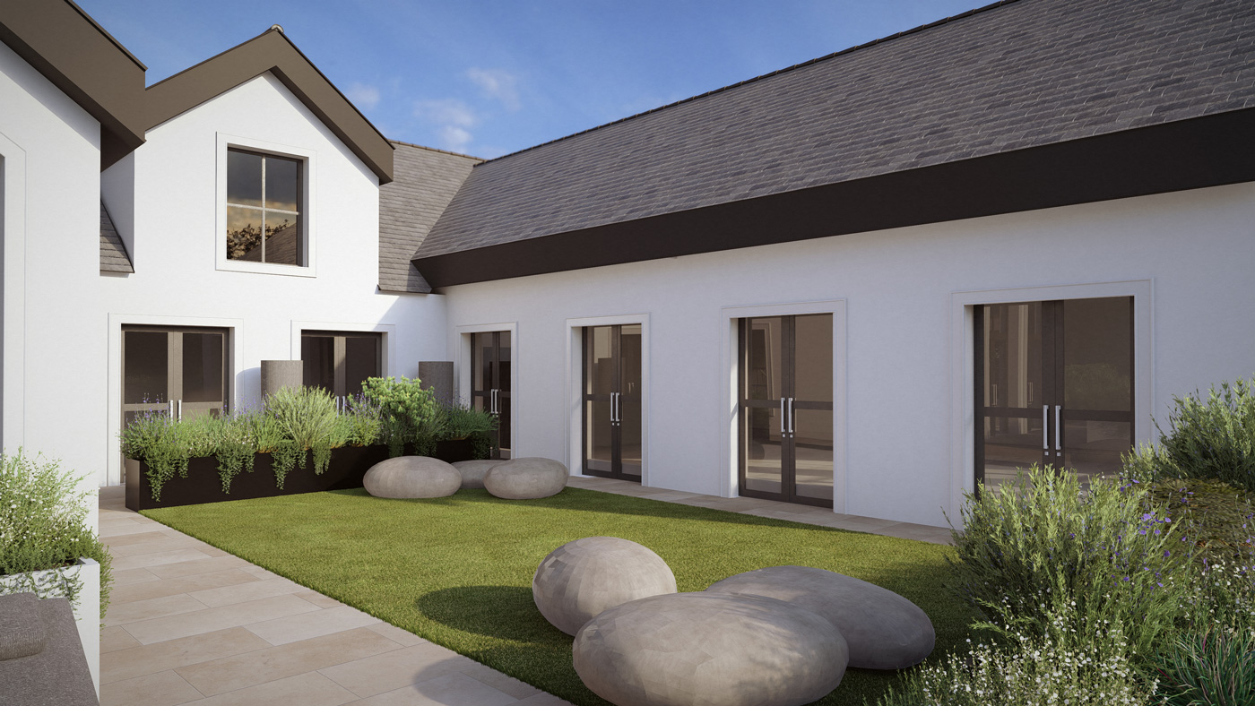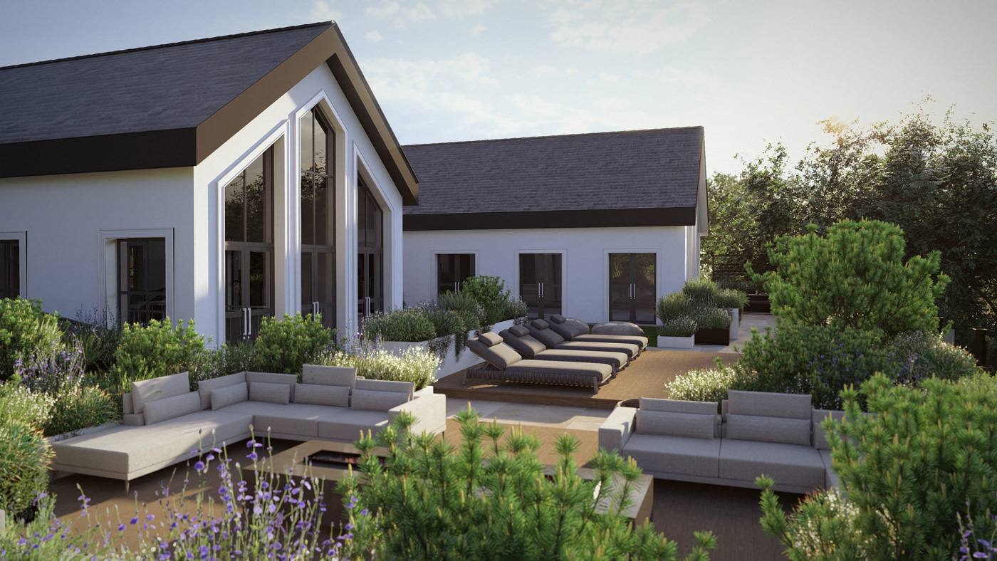 The design balances luxury, detail and atmosphere, pairing strong architural forms with gentle planting to create a truly immersive retreat.